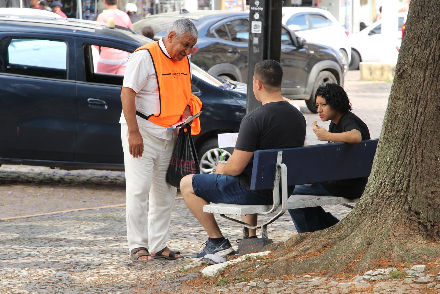 people laughing and talking outside during daytime