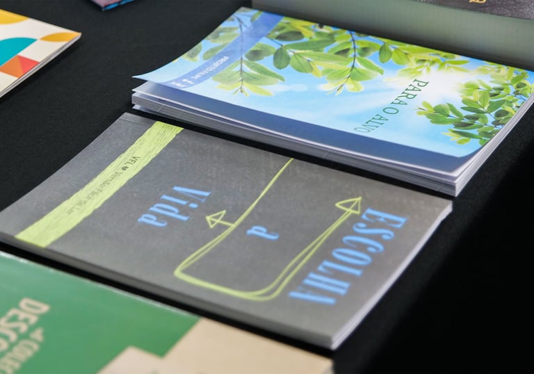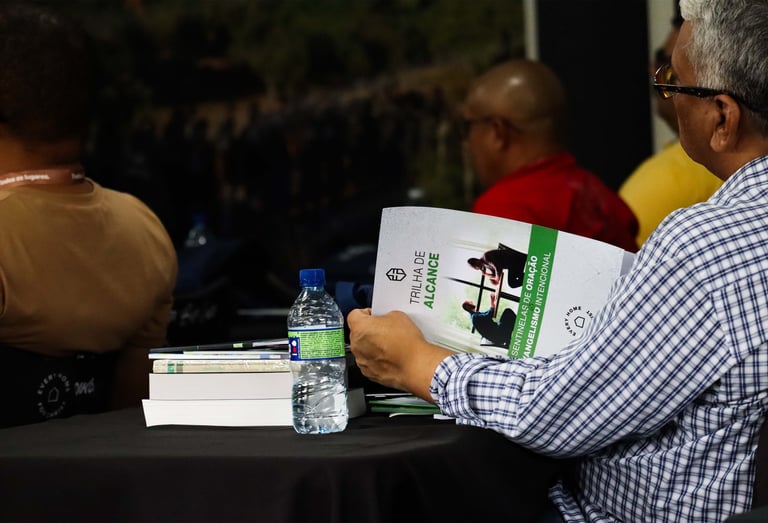 Além da capacitação, a Igreja é equipada com materiais impressos, para que ao fim do treinamento ela tenha em mãos ferramentas de estudo e de prática. No fim da Trilha, você terá um conjunto completo de recursos para orar, evangelizar e discipular de forma estratégica.