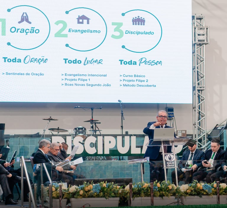 Você receberá uma capacitação focada no cumprimento da Grande Comissão, onde abordamos três pilares essenciais: oração, evangelismo e discipulado.